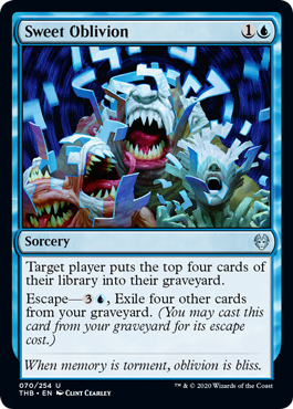 Sweet Oblivion probably isn't good enough, milling any player for 4 cards isn't bad, but 4 mana escape cost makes it worse than some of the mill tools we have available right now. The translation isn't confirmed yet, let's hope maybe it is a little bit better, maybe milling more cards or make the escape cost less.