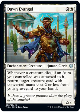 Dawn Evangel is kind of hard to evaluate, this whole Aura thing isn't a deck that we have right now, it is a brand new deck in this set, so I have a hard time saying if it will be bad or not. This card will certainly be powerful in the deck, it helps give you extra steam and it makes sure that you will have a target for your auras to hit. But I cannot really say whether or not this deck will be good. It is a powerful card, but it may not be a powerful deck.