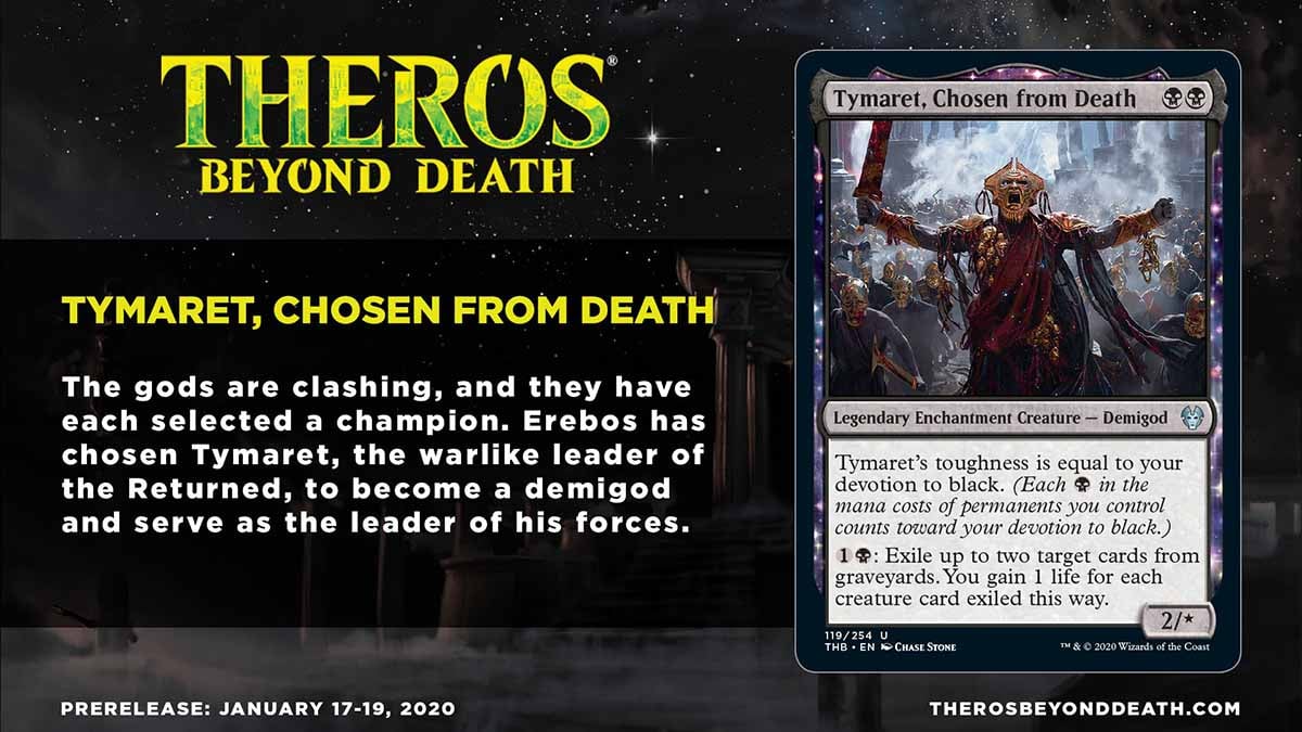 Tymaret, Chosen from Death is another card where it is a powerful tech options against graveyard decks, but it isn't useless against other decks as well. This probably isn't as good to add to your sideboard as Erebos's Intervention, but if you are playing an aggro or midrange deck than this is just a solid 2 drop with the possibility of ruining your opponent's strategy. This card won't be good unless the meta is just right, and even in the right meta it won't be the most powerful card, but at the same time it is not a bad card.