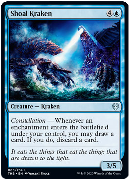 Shoal Kraken probably won't be used except as a 'big body' in limited. Cycling through cards isn't bad, but this card is 5 mana and it doesn't even do anything the turn you play it. You have to play other cards alongside it to make it do anything and even then the payoff isn't that big. This card is just too slow and too much trouble. However, in limited a 3/5 body will be able to block just about anything and survive, don't underestimate this card in draft.