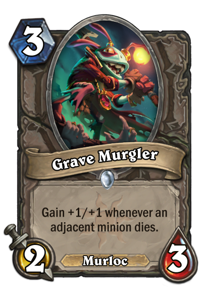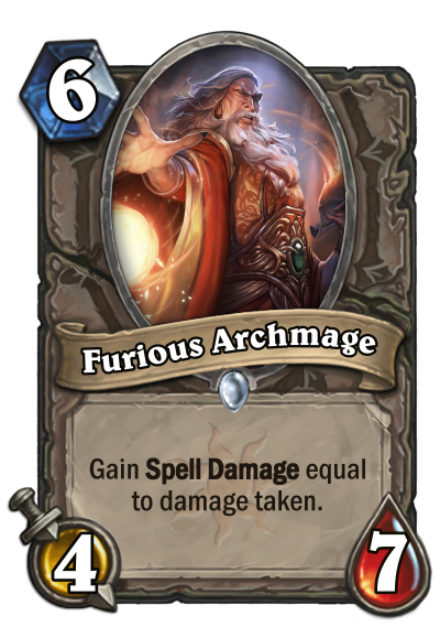 Phoenix: "Those Neutral Commons were honestly probably the hardest cards to design. I dislike reprints and I believe every card should bring a unique standpoint to the game. I think the key component of making interesting common cards is trying to find new combinations of highly recurring mechanics. For example, Grave Murgler, in its separate parts, is very simple. "When a minion dies"; "adjacent minions"; and "+1/+1" are all very repetitive, and each displayed through dozens of different cards. However, when placed together, they create an interesting dynamic. Another example of this strategy occurs with Furious Archmage. "When damaged" and "Spell Damage" are again, very common mechanics. I took the base stat-line of the original Archmage and tried to combine both ideas at once. Again, the effect individually feels very very simple, but together, create interesting products."