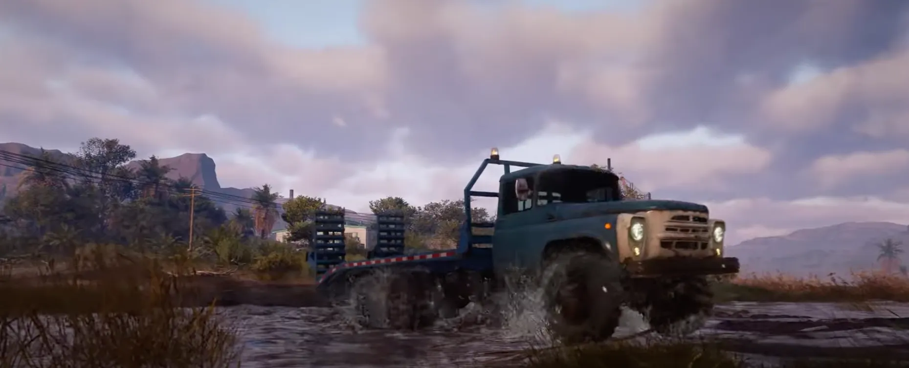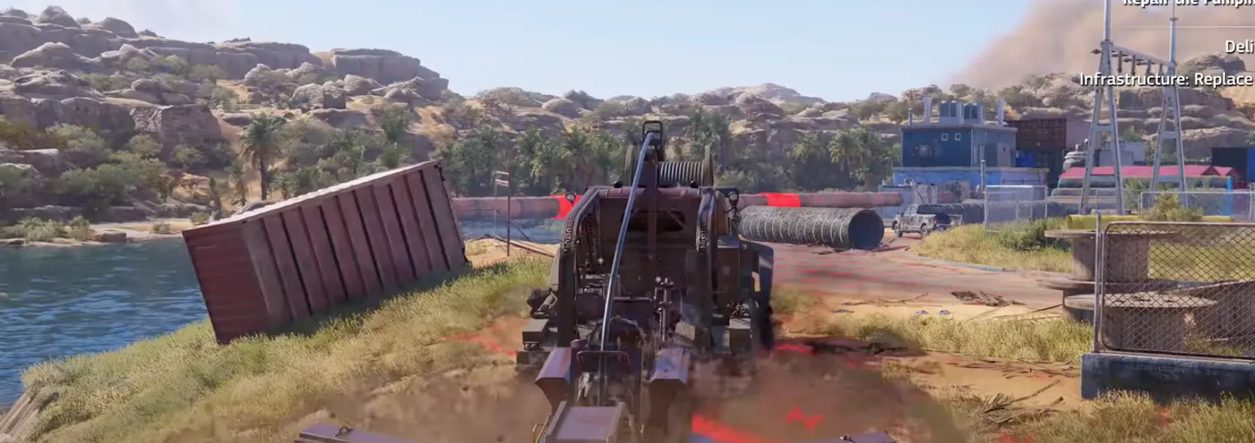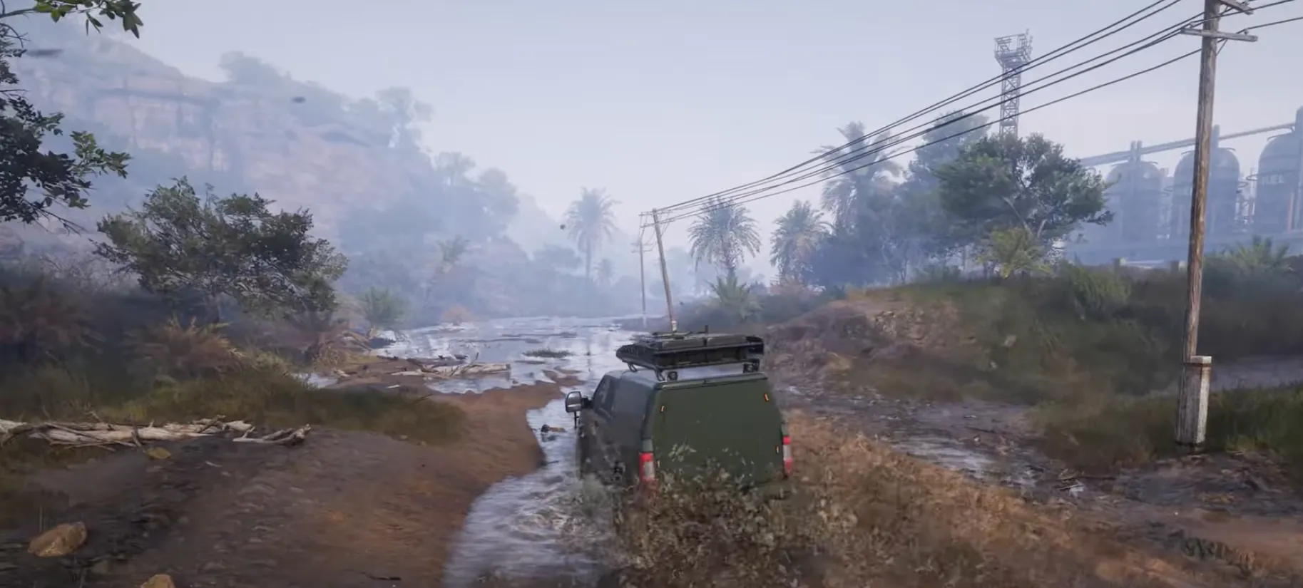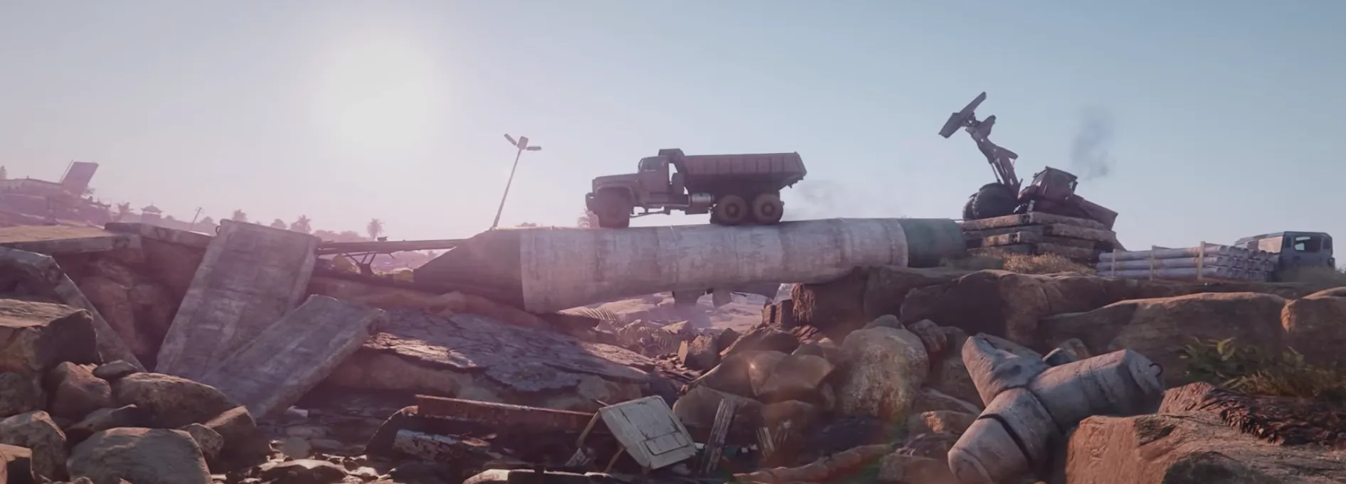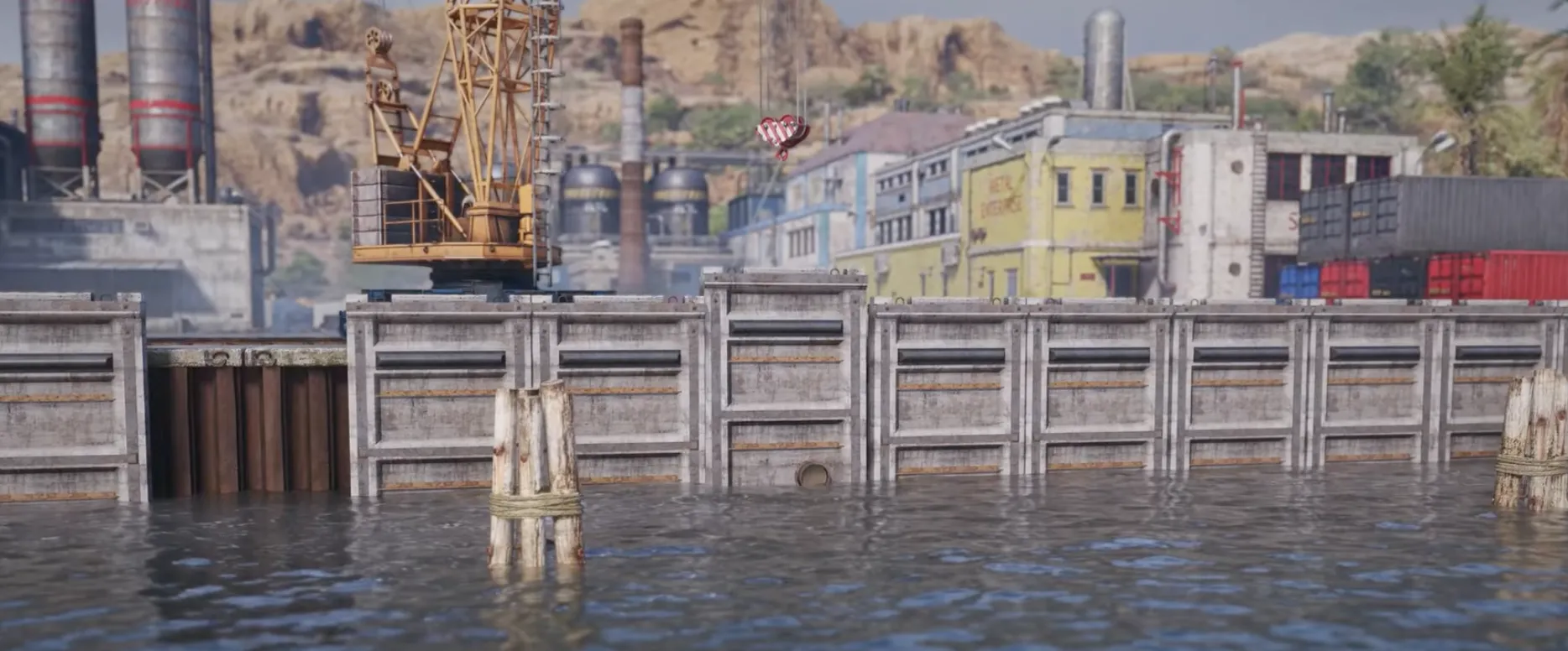 The first map that was teased is Precipice. It is an area that has been taken over by flooding, featuring both an industrial and a civilian zone. We'll be delivering supplies while mitigating the damage caused by the flood. We see an absolute mess of mud to trek through, which should make for interesting vehicle movement, crossing over streams of water which have formed due to the flooding, and seemingly the ability to build up walls to protect from further flooding.