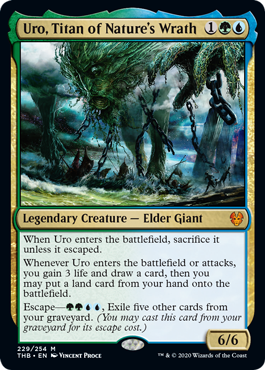 Polukranos, Unchained, Uro, Titan of Nature’s Wrath and The Royal Scions both excel in different ways, with Polukranos being just a continuous fight stick to help stabilize the board, as well as becoming massive to beat down the opponent while both Uro, Titan of Nature’s Wrath and The Royal Scions draw cards and put you ahead via card advantage. Finally, The Magic Mirror does the same thing that Uro and The Royal Scions do, but significantly better. Should this card probably be replaced for another card that can be gotten off of Niv-Mizzet Reborn? Probably, but the two things I love most in magic are blue cards and drawing cards, which The Magic Mirror checks off both of those criteria fairly easily. Jokes aside, the card often gets cheap enough to be around 4-5 CMC (Converted Mana Cost) and provides a problem the opponent must answer relatively quickly. It is a slow, insidious killer but there is something about drawing 7 cards at the beginning of the upkeep that makes the card so appealing to me.