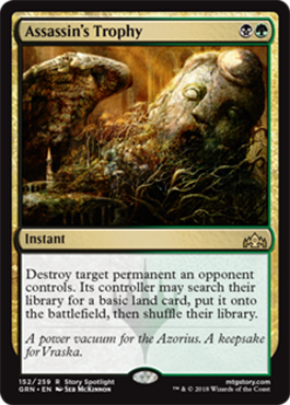 Next comes our removal spells, which make up a majority of the deck. One of the benefits of being a five-color deck is that we have access to every single premium removal spell. The notable ones are Drown in the Loch, Tyrant’s Scorn, Assassin’s Trophy, Bedevil, and Kaya’s Wrath.