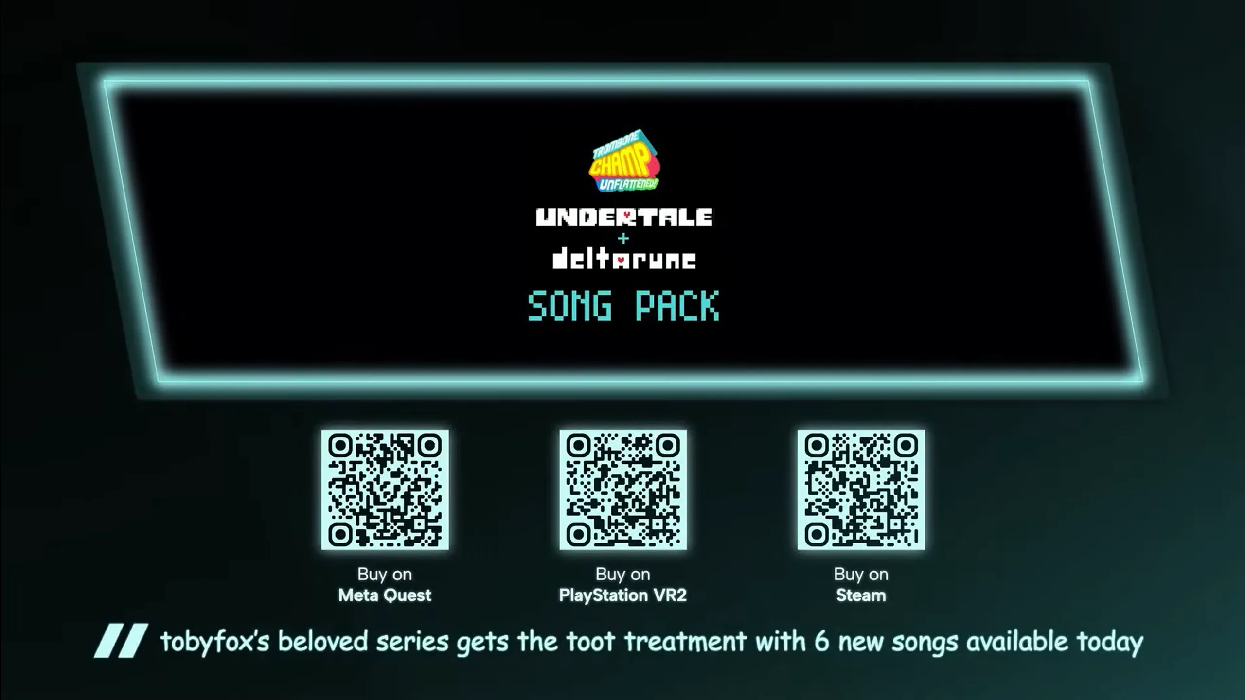 Toby Fox's greatest hits can now be played on your virtual trombone! Can your lungs survive Megalovania? Trombone Champ is available both in flat and VR, and the songs will be as well.