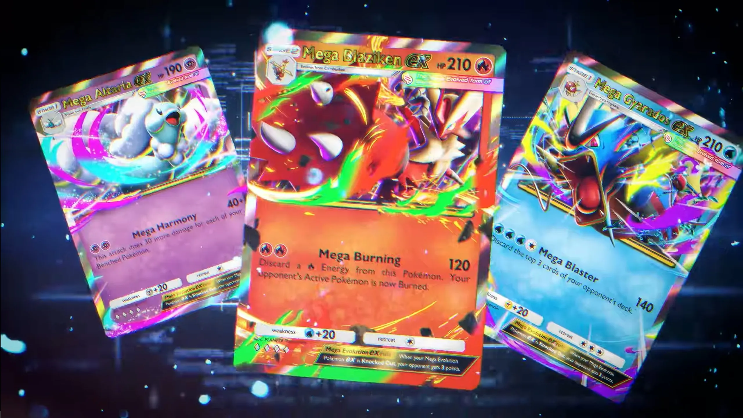 So far, we know only of the 3 cards shown below. Interesting to note that they don't evolve from their non-Mega counterparts, but rather the stage before that. So Mega Blaziken EX will evolve from Combusken directly. This change was also implemented in the proper TCG, so it's not exactly unexpected. Also of note is the penalty for losing: If your Mega faints, your opponent will get 3 point, instantly winning the match.