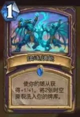1: Give your minions +1/+1. Shuffle 2 copies of Time Tear into your deck.
