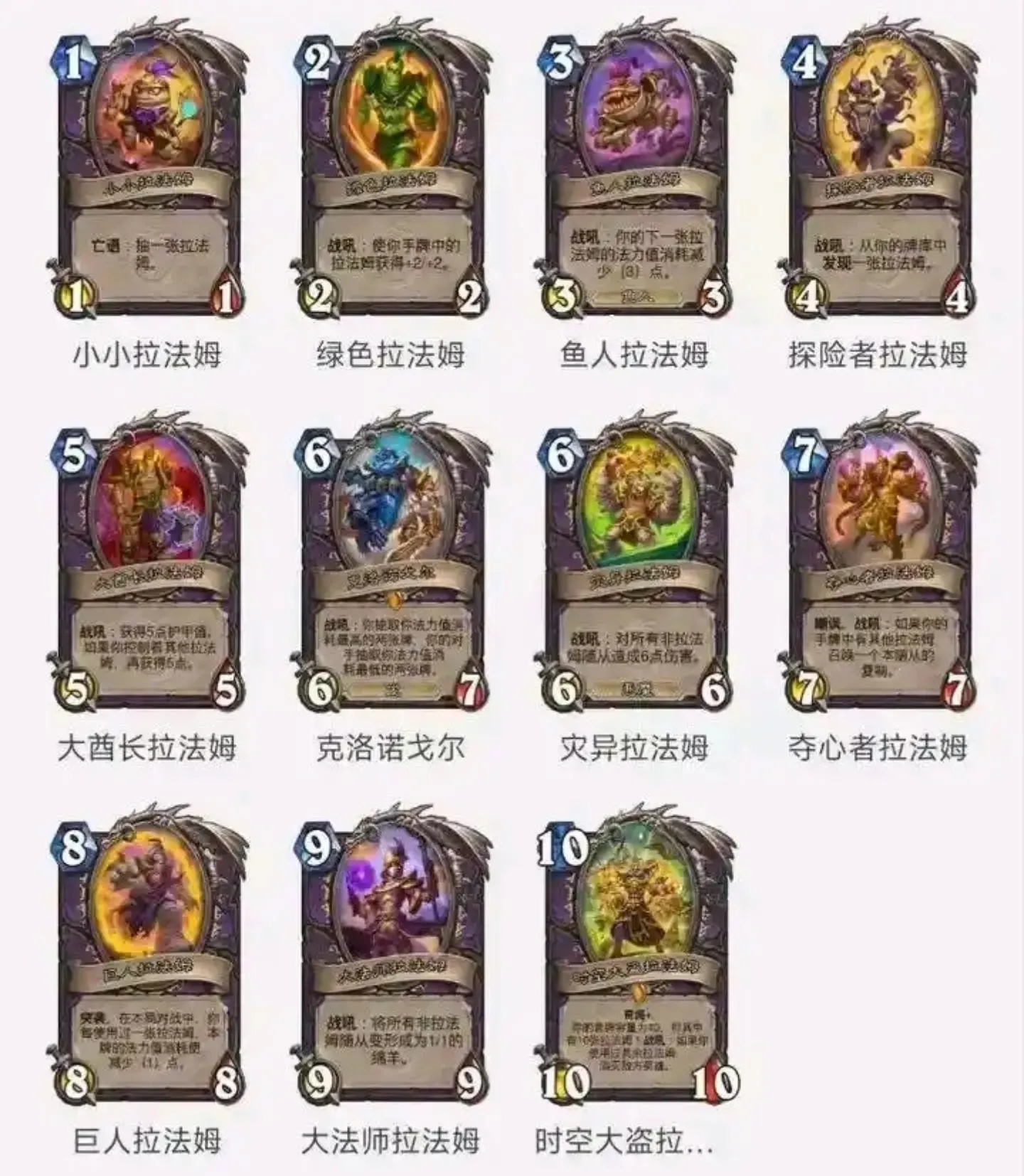 8 mana 13/13: Rush (i think), Battlecry: Fill your opponent's board with random minions costing (1) mana.