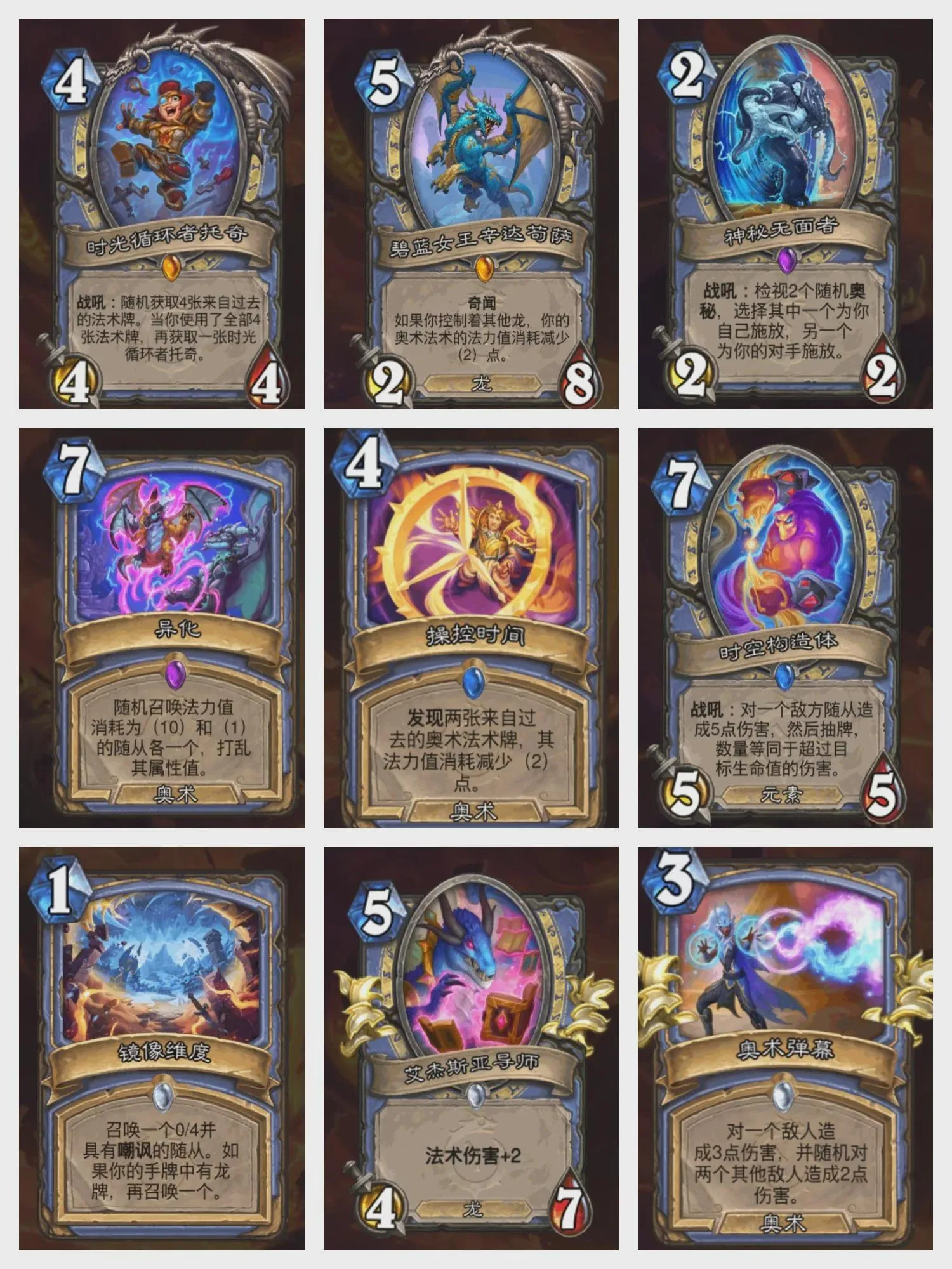 1 Mana – Arcane Spell Summon a 0/4 minion with Taunt. If you’re holding a Dragon, summon another.