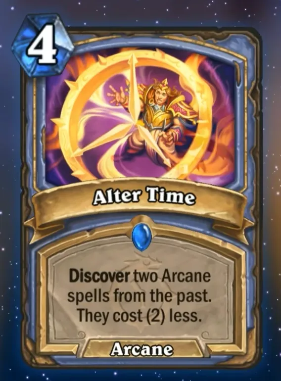 Alter time - Play it and pray to get arcane missiles or arcane bolt. Its lucky to be printed in a class that usually dont care about tempo