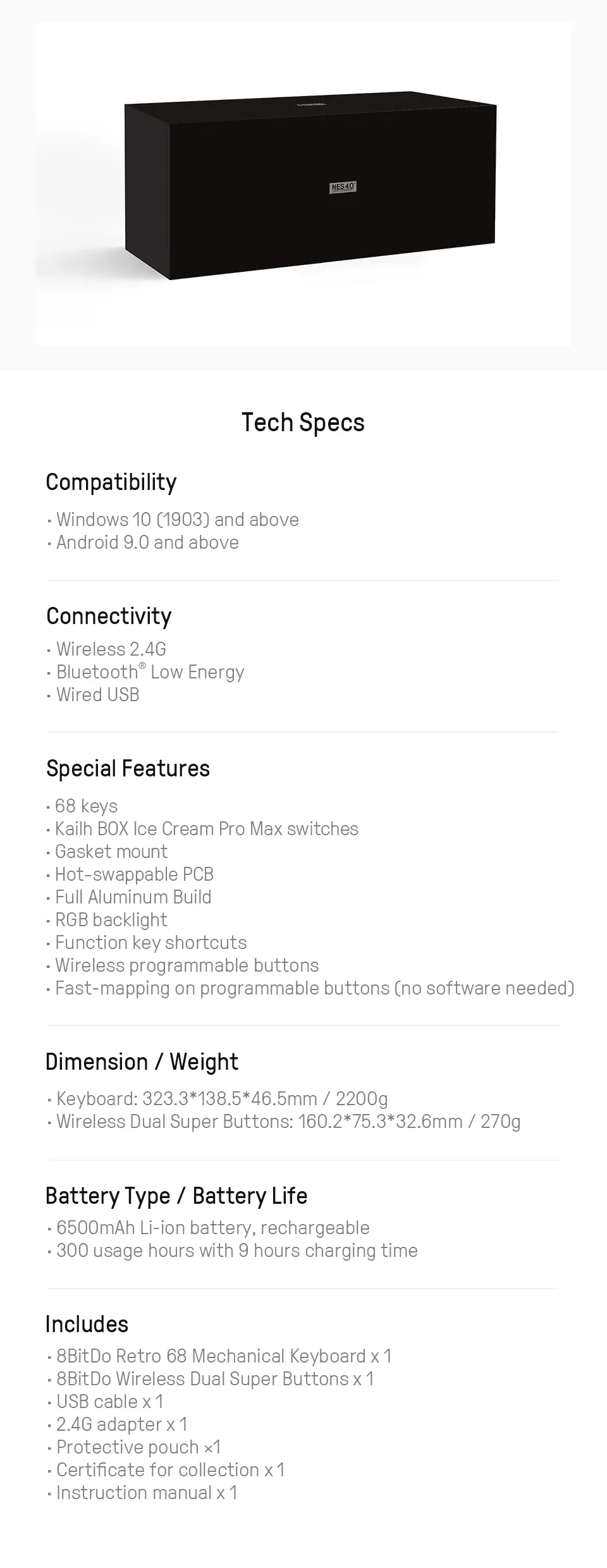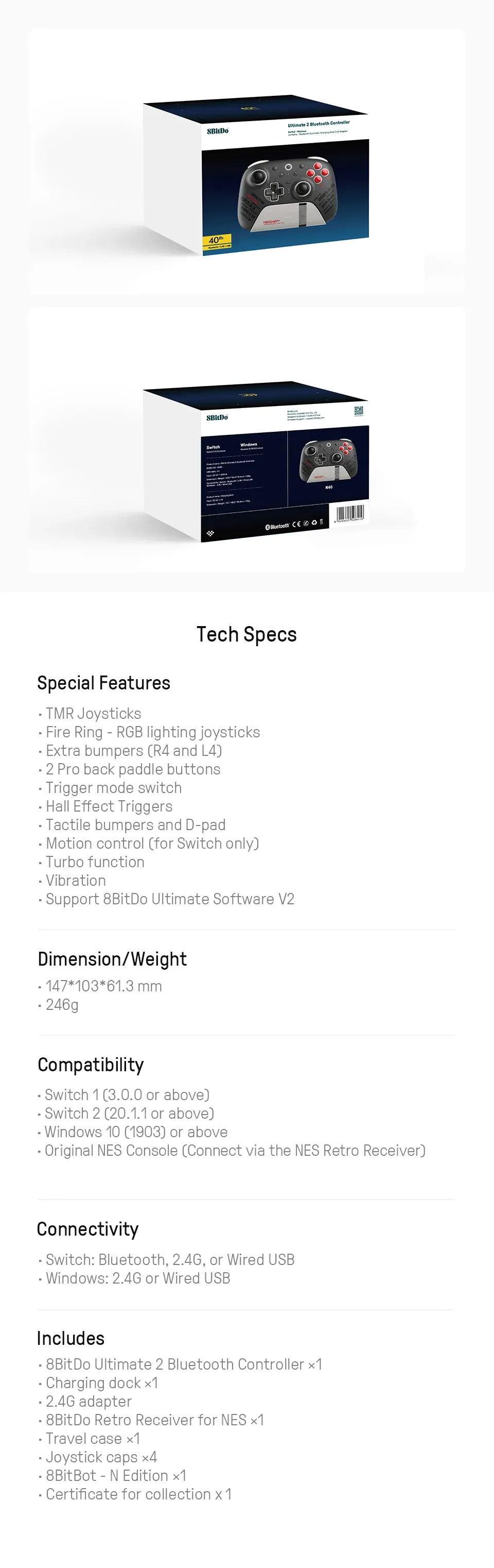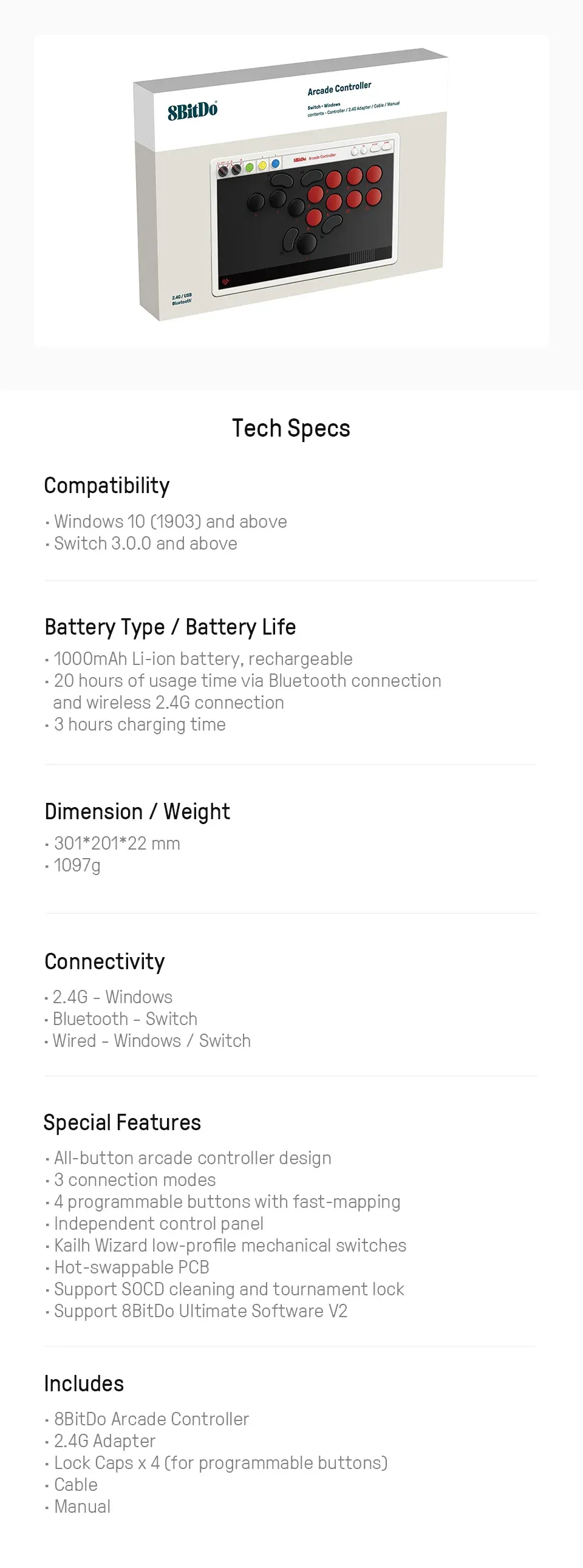 - Compatible with all 8BitDo Bluetooth Classic controllers and arcade sticks (excluding 2.4G controllers)
