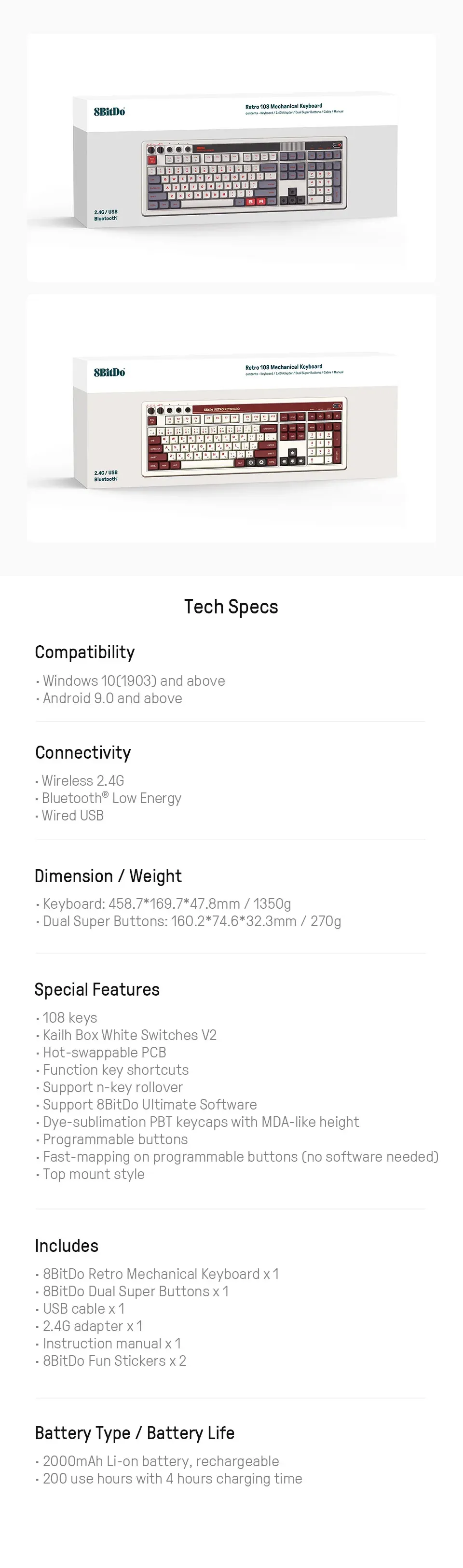 8BitDo Retro 108 Mechanical Keyboard - $91.99 USD