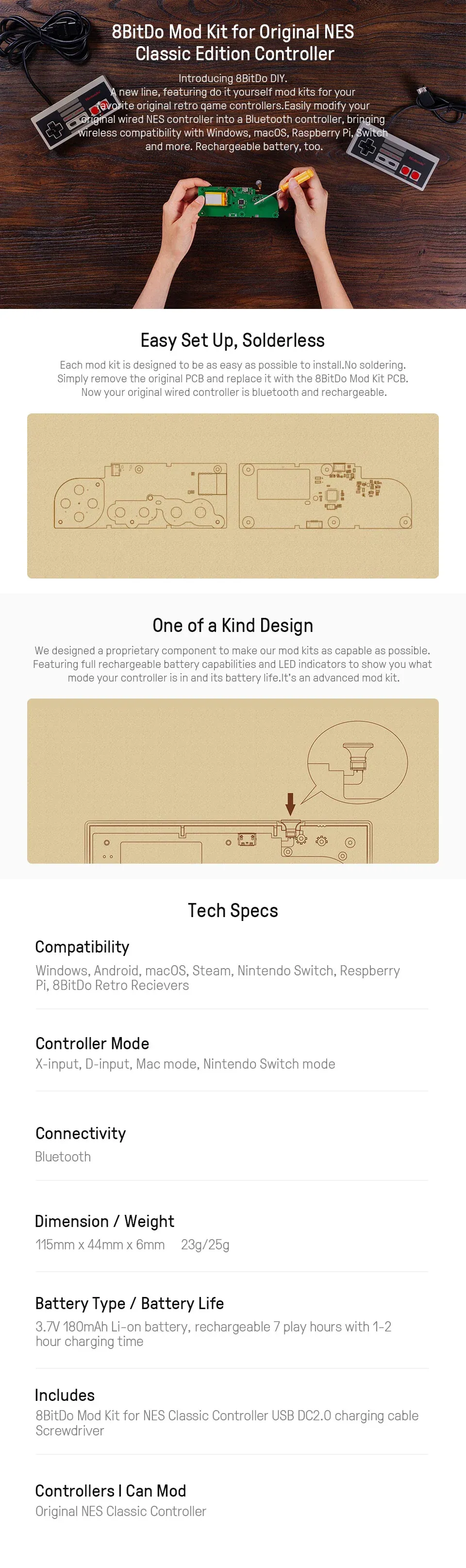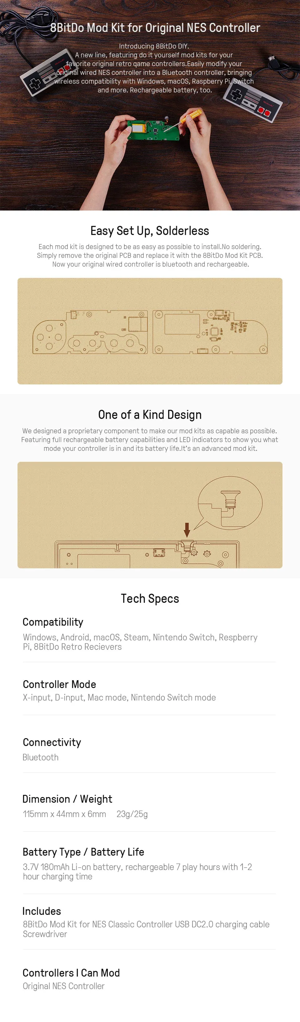 8BitDo Mod Kit for Original NES Controller (Original) - $21.99 USD (Retro Receiver)/$22.98 (Mod Kit)