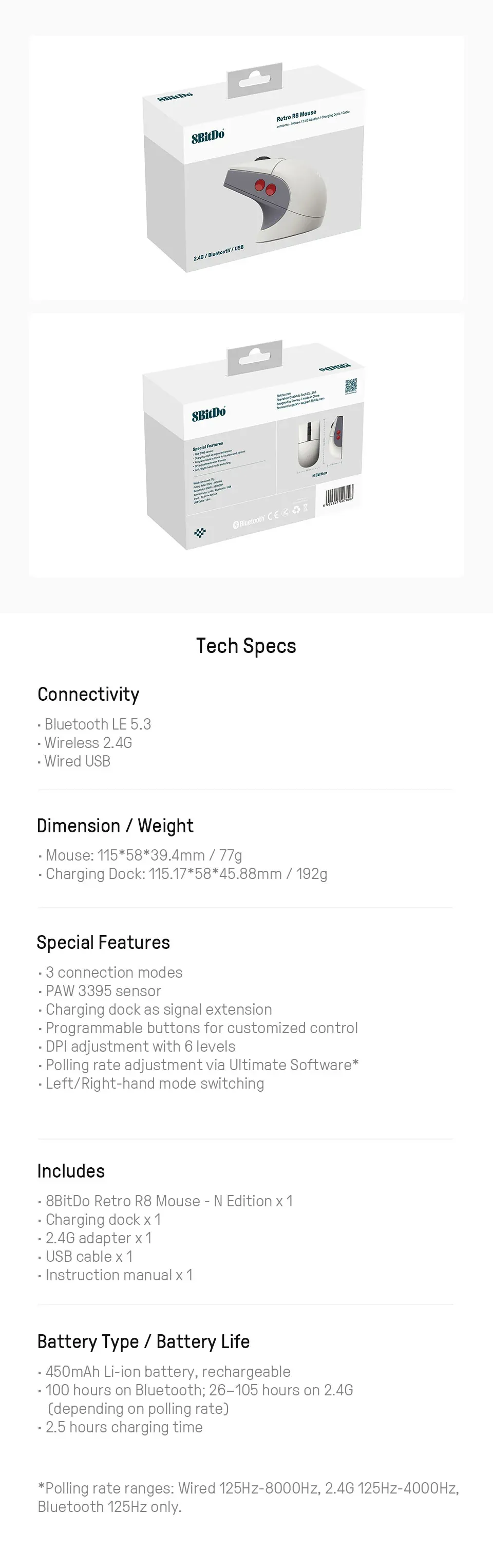 8BitDo Retro R8 Mouse - N Edition - $39.99 USD
