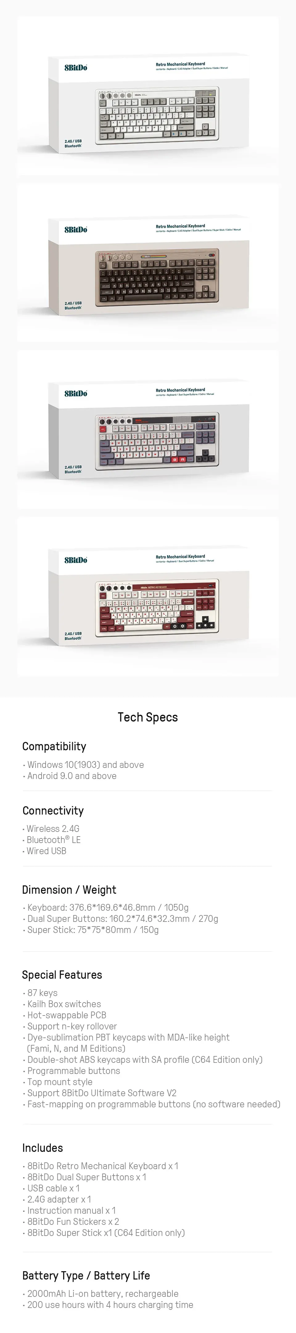 8BitDo Retro Mechanical Keyboard - $89.99 (C64 edition)/$79.99 USD (All other editions)