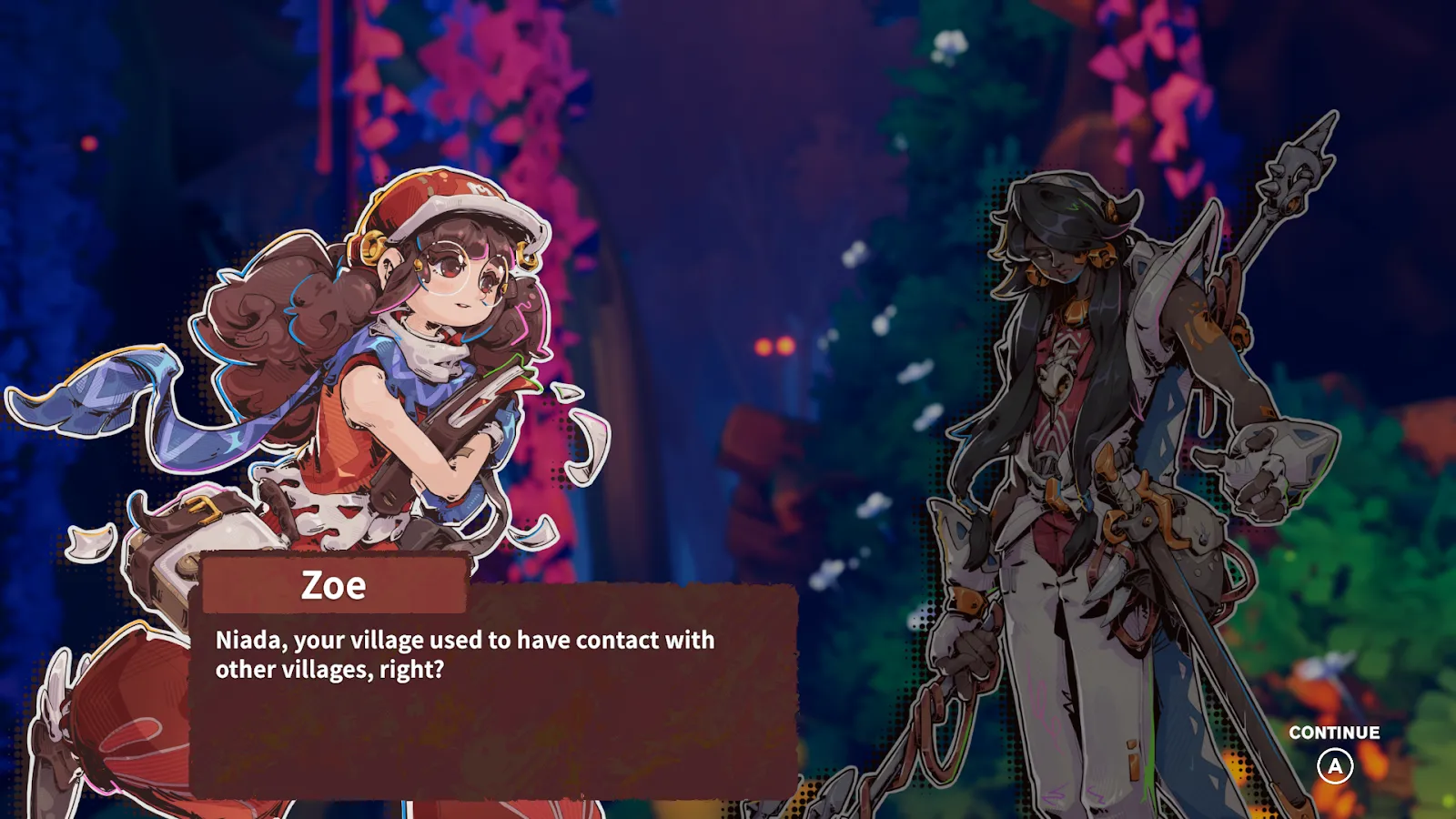In Haste, you control Zoe, a courier who hops between worlds to deliver messages all over the… worlds. There’s not much explanation here, which leads me to the biggest negative of the entire game which I’m going to get through with at the very beginning. The story in this game is unnecessary and hamfisted. The plot tries to play with themes of one’s choice in their destiny and feelings of self-worth, but it only really starts picking up way too late. Because of this, the game has a lot of “plot dumping” towards the end.