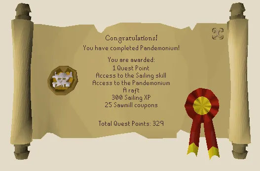 To get things started with Sailing, you'll first need to complete the Pandemonium quest which introduces you to the skill. The quest takes place on the docks of Port Sarim and will require you do grab a Hammer and Saw.