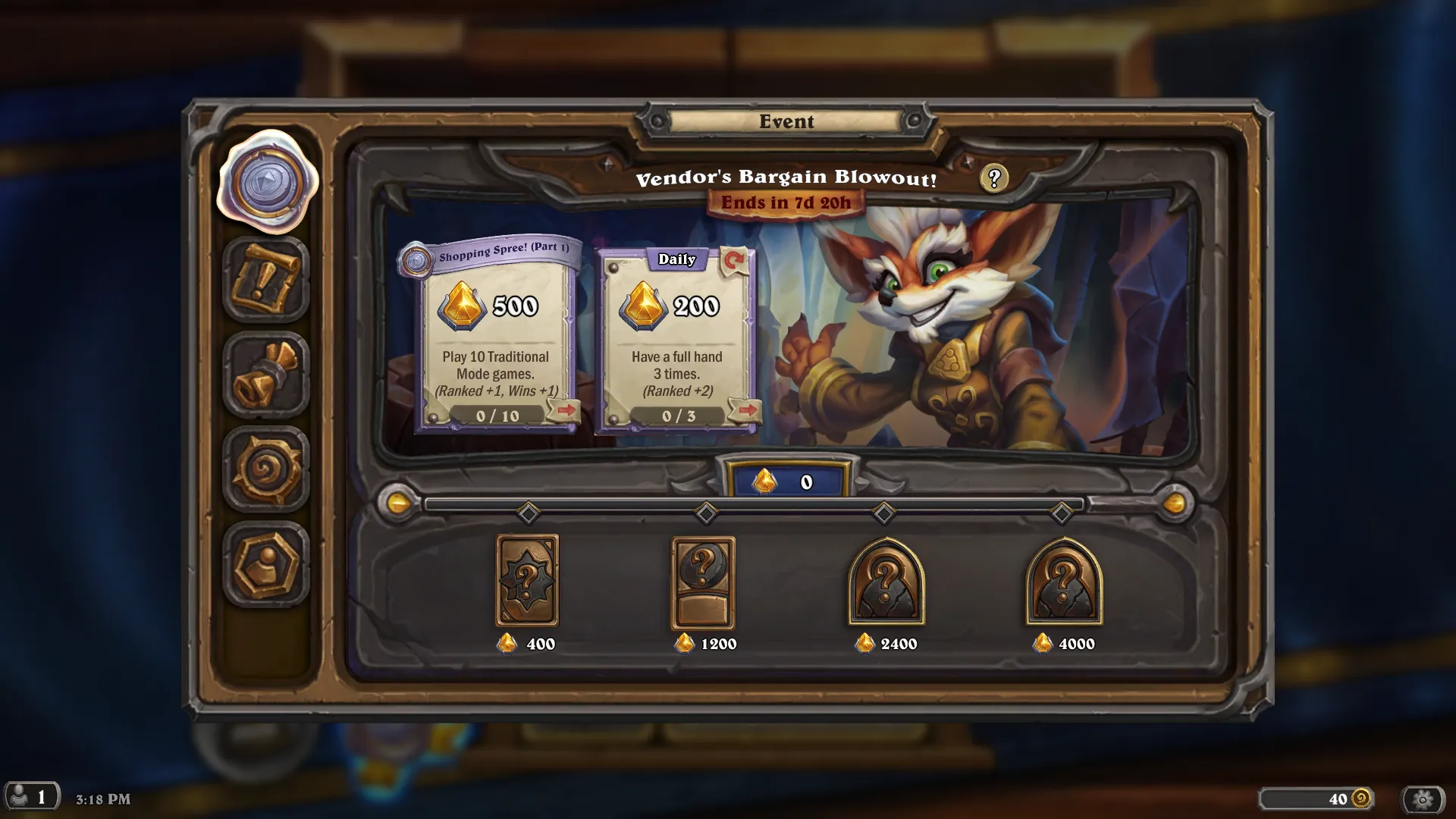 A new Hearthstone event, Vendor's Bargain Blowout, has begun. It weirdly lasts for 8 days instead of 7, so you've got until December 3 to get everything.