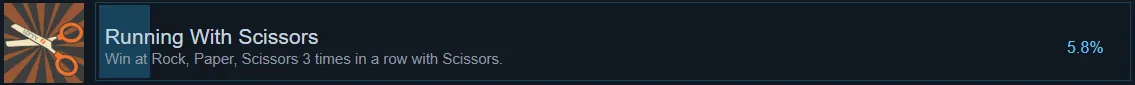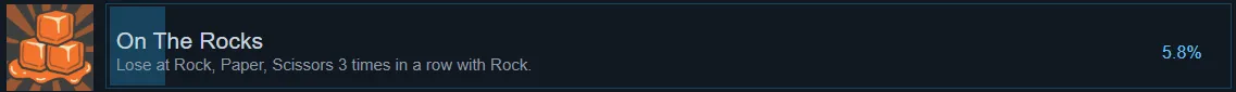 For some reason, Team Fortress 2 has two achievements for winning and losing at Rock, Paper Scissors three times in a row with either Rock or Scissors. This sounds fine except for one caveat... You can't choose whether you go with rock, paper, or scissors. So not only do you have to roll the same 1/3 results three times in a row, but your opponent needs the same (bad) luck to roll the same winning/losing result for you three times in a row as well. So after you manage to land three Rock-Scissors games in a row and three Scissors-Paper games in a row, your boosting buddy will now want the achievements too and now you've got to slog through more slot machine garbage so that both players can get what they wanted out of the exchange.