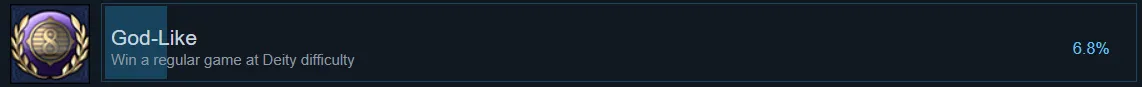 This is slightly more tolerable for games where you need to complete multiple playthroughs to earn all of the achievements anyway, but if you're playing a new game in a genre/franchise that you're already good at, you'll already be good enough to do it on a harder difficulty the first time. Civilization V and VI for example, both have an achievement for beating the game on all of its difficulties (all 8 of them!), but while the ones in VI unlock the lower difficulty ones too, the ones in V do not, so the transition from V to VI is smoother than my transition which was from VI to V.