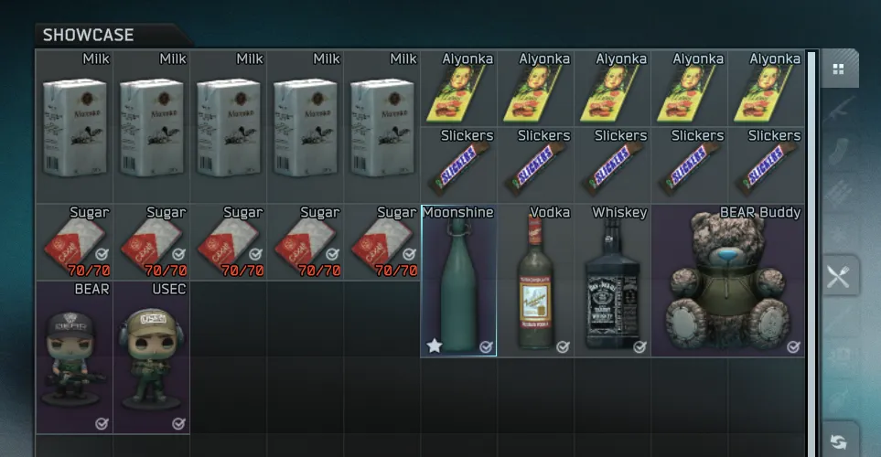 - The three spirits at Therapist Level 4 can become a "T H I C C item case", provided you get 50 Moonshine, 50 Vodka, and 30 Whiskey.