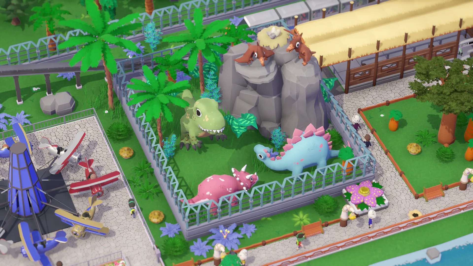About three months ago, Parkitect's final DLC, Dinos & Dynasties launched. Most of their efforts at this point are on their current project, Croakwood. However, they haven't stopped on Parkitect entirely since they are still giving the community new design challenges every month, celebrated the game's seventh anniversary on November 29, and have updated the Dinos & Dynasties DLC to include new dinosaur props and two net hats for the Souvenir Stall.