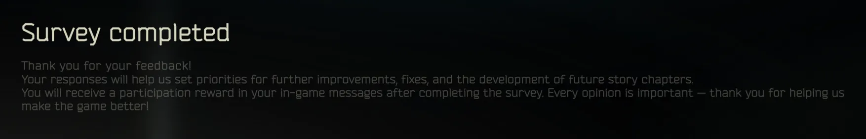 If you want to give the Tarkov devs your feedback, login and check the Survey button in the bottom right corner to get started. Everyone who does the survey is rewarded with a care package.
