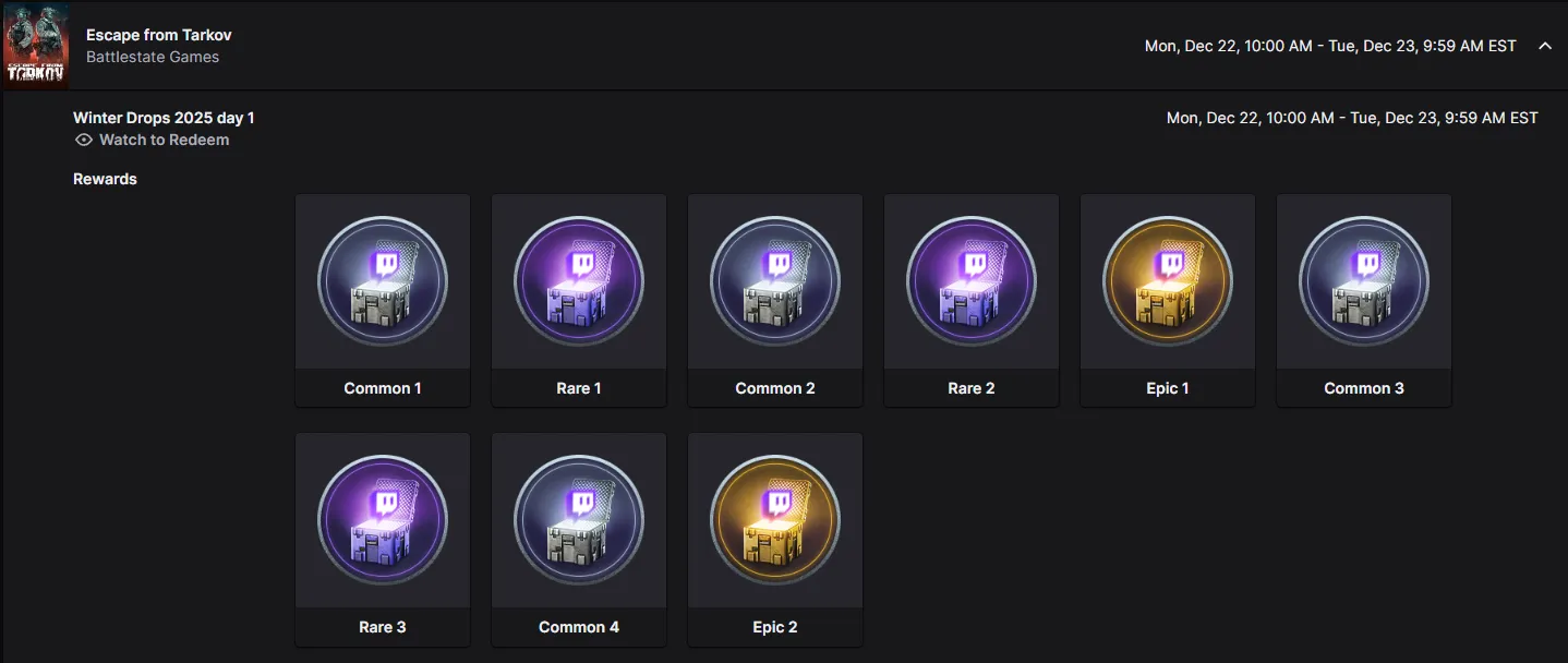 If you took part in the Twitch drops during the release of Escape From Tarkov, then you already know what to expect for this run of drops.