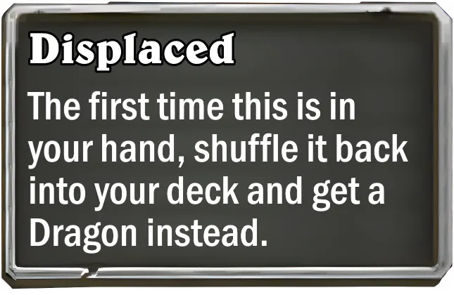 The set also contains one new keyword, Displaced. The first time a card with Displaced enters your hand (by any means), it goes into your deck and you would get a random Dragon instead of that Displaced card. When you draw that same Displaced card again, you will keep it.