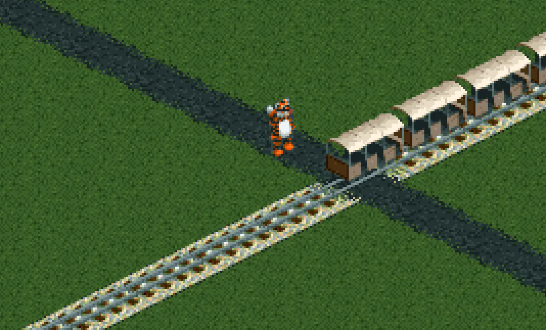 This update changes the sprites of staff to use a proper standing animation when they're waiting at an occupied train crossing. Previously, they would freeze their current animation, which would result in them being frozen in a walking state while waiting for the train to pass. For the other three staff types, this generally doesn't look that bad, but it's very noticeable on Entertainers, which have much more animated movement styles and it looked a little bit weird for them to be frozen in time in an awkward standing position while waiting for the train.