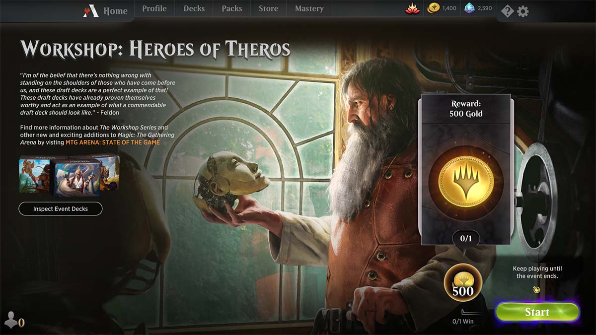 - Heros of Theros: Play with Limited decks drafted by other players who managed to earn a 7–X record in their event. Have you ever asked yourself what a good Draft deck looks like? If so, this Workshop is for you!