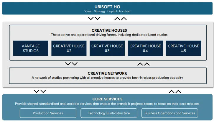 Ubisoft’s new operating model will be structured around five Creative Houses. These will be supported by a Creative Network providing development resources, shared Core Services and a reshaped HQ. This new organization will start operating early April.