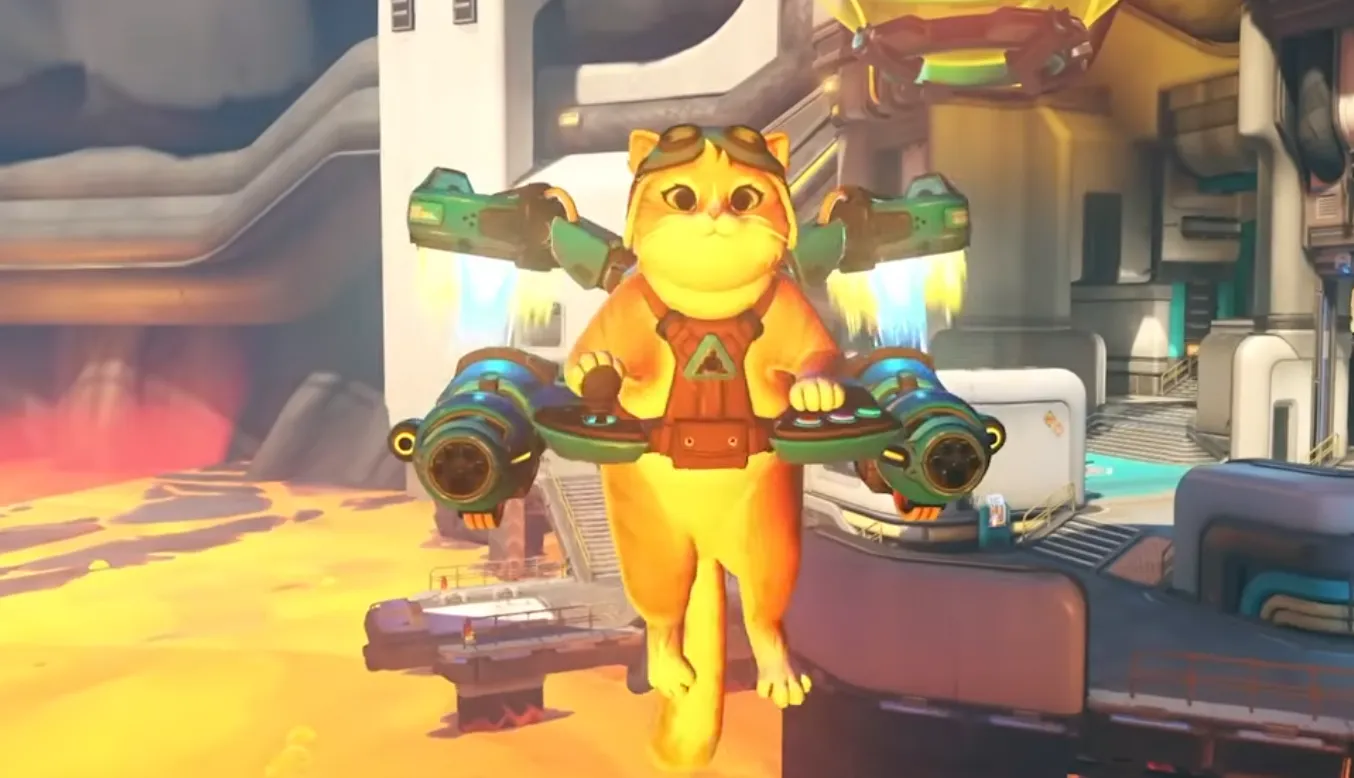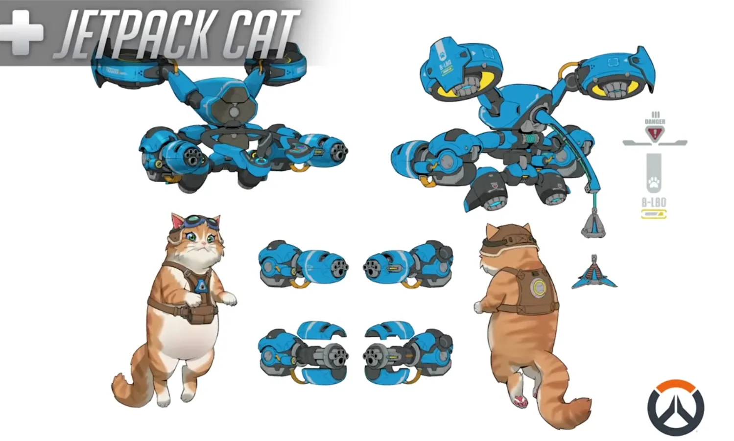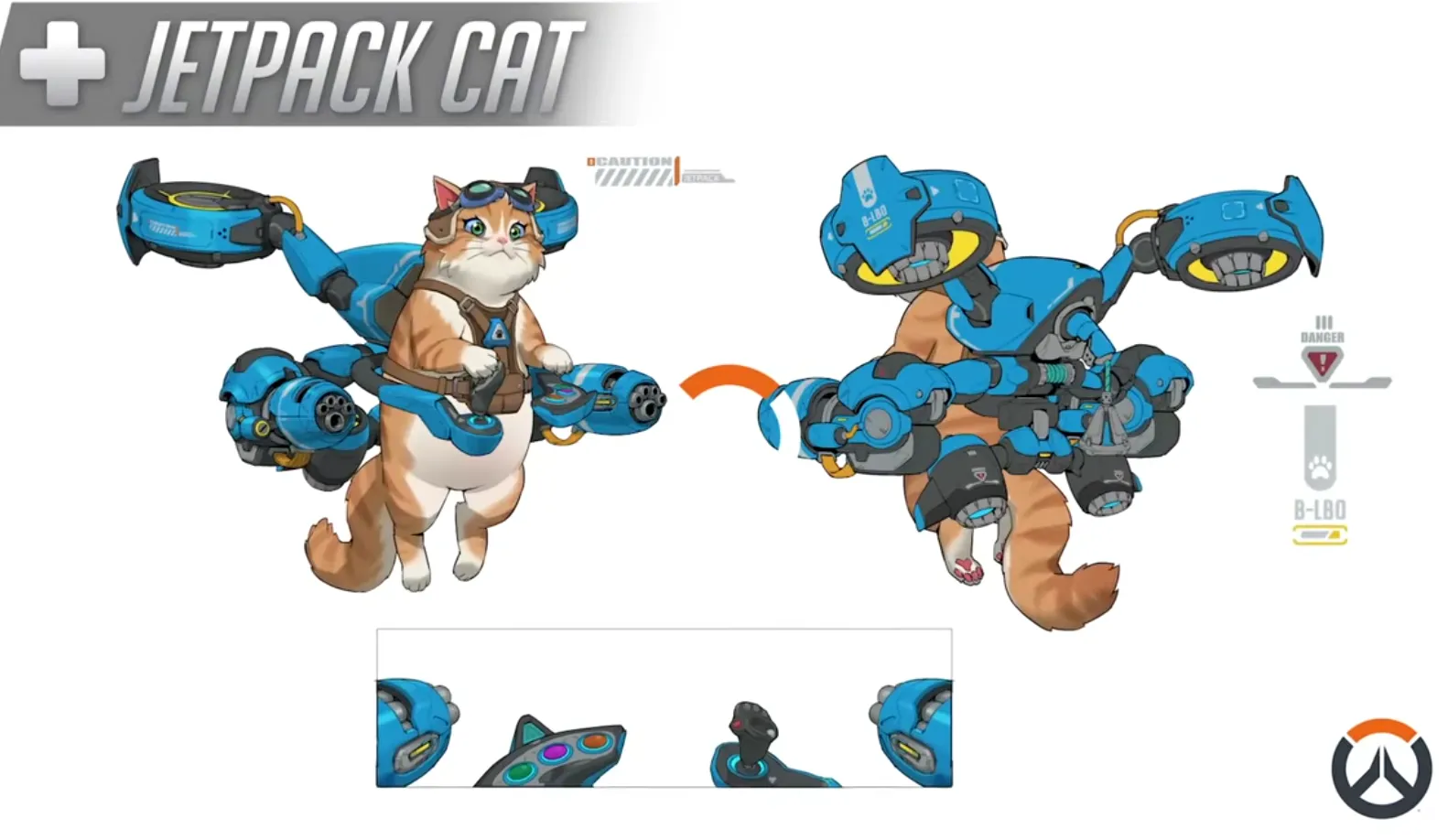 Not much is known about "Jetpack Cat", she simply appeared in Gibraltar as a stray kitty. Due to having an always-on jetpack, you play in the air for the game and adds a new type of support character.