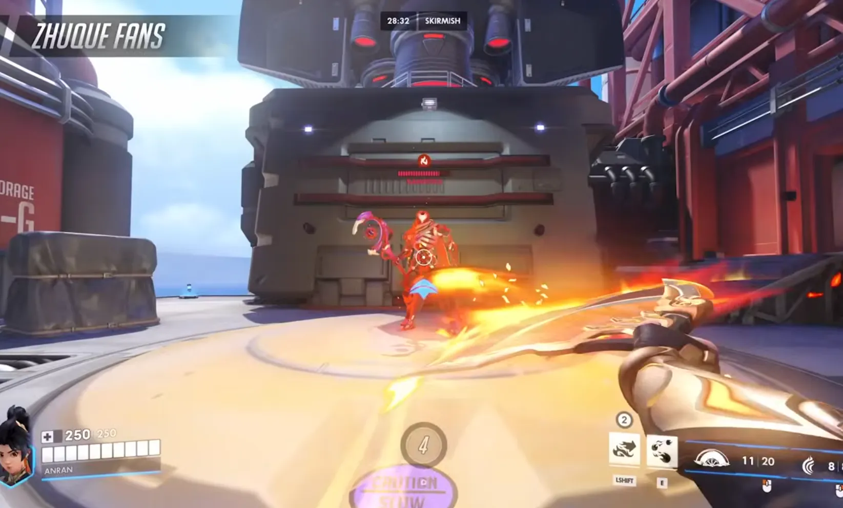 - Zhuque Fans - Fires two blazing projectiles, stacking her Ignition passive which sets enemies on fire.