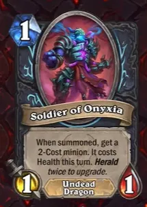 Additionally, one new Druid card was accidentally leaked during the reveal video. The card natively costs Mana, but it costs Health here instead because of Arisen Onyxia.