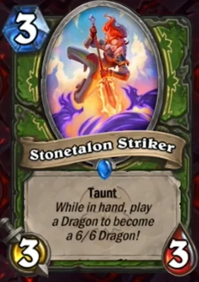 Ebonscale Scout & Stonetalon Striker - There's definitely an effort to create a sort of dragon hunter that rapidly scales out of control if they ever find the cheap dragons from their deck, and that pretty much sums up this, and indeed all cards that are like this. You pretty much need alot of draw options, and a good deal of cheap dragons. Does hunter have any of these cards? Draw alone is moot, so just pray hard theres loads of cheap dragons revealed later otherwise all these great cards turns to shit.