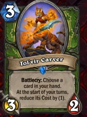 Confront the Tol'vir - Theres just no chance this doesnt see any play. Its effect is just too good, and at a price of 3 mana, it seems a bit far too good. Not sure what the interactions would look like after you get tolvir carver to reduce the 1st copy to 1 mana, play it, and will the 2nd copy result in a forever loop?