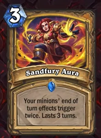 Sandfury Aura - Its lucky its not 2 mana, otherwise it'll see no play. Is it good enough though? Well, yea because it synergizes with just about all the other paladin cards, and crucially allows norzdormu to be a good card even if you dont have the maul equipped.