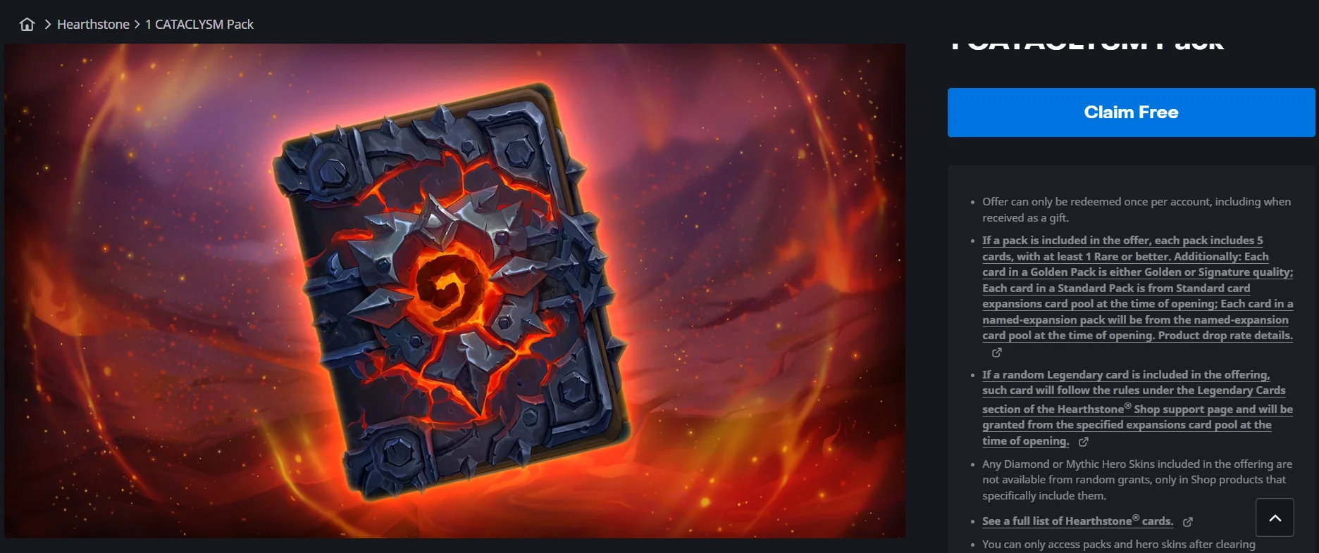 Until a week from now, you can claim a free Cataclysm card pack on the Battle Net store.