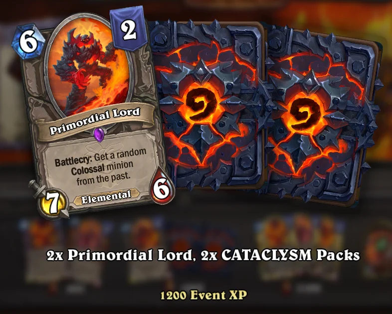 1200XP gets you two copies of the new Neutral Primordial Lord and two Cataclysm packs.