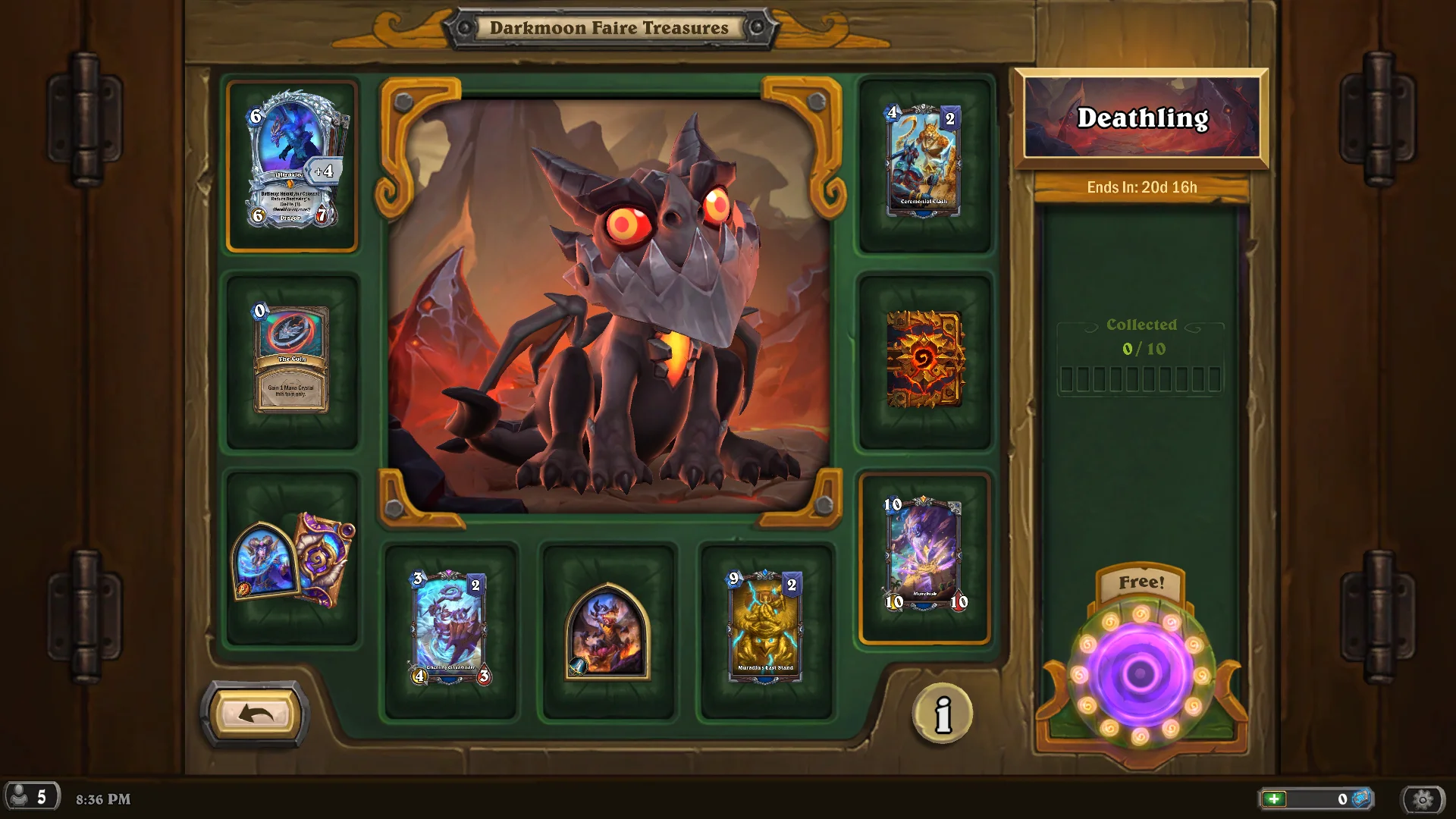 The next Darkmoon Faire Treasues roll has commenced, and your first roll is free, so it's technically a freebie. You might just get the new Deathling pet... or you might just get two Signature Commons like I did.