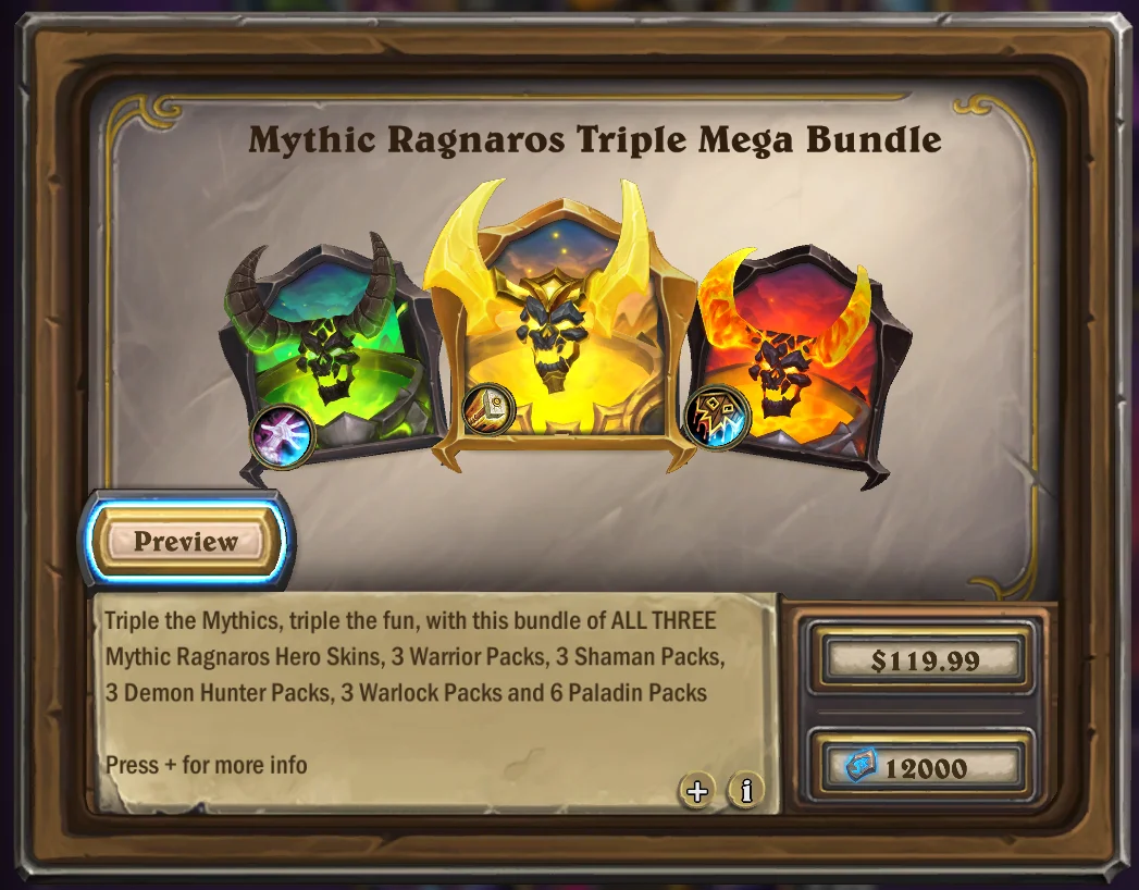 That's not all though. In a move that's currently not been received so well by the community, you can also buy all three Mythic Skins and all of the packs that come with it for $119.99 USD or 12,000 Runestones. In other words, effectively 3 skins for the price of 2.