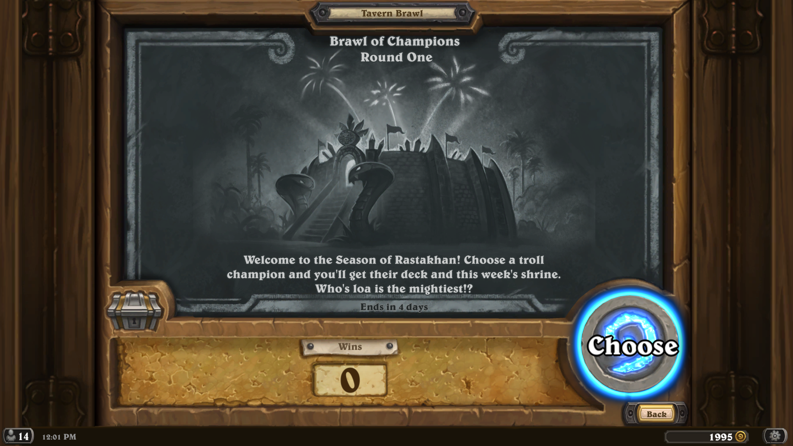 - An event quest will be availible once each week which awards a Rastakhan's Rumble card pack with the condition of winning 3 Tavern Brawls.
