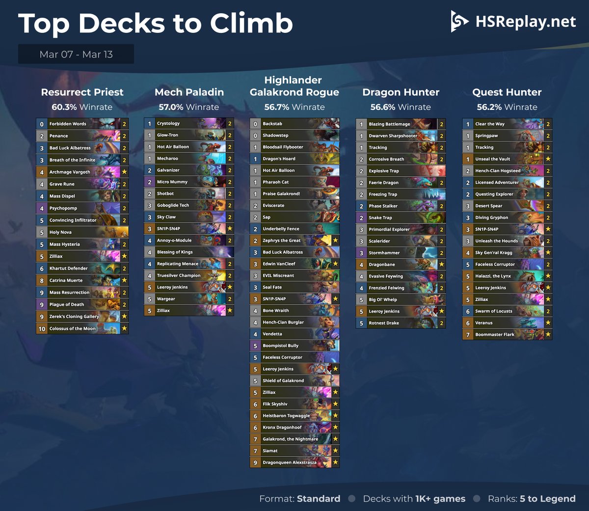 Looking to improve your rank before the big announcement next week? HSReplay has you covered with these five fantastic decks for climbing the higher ranks towards Legend.