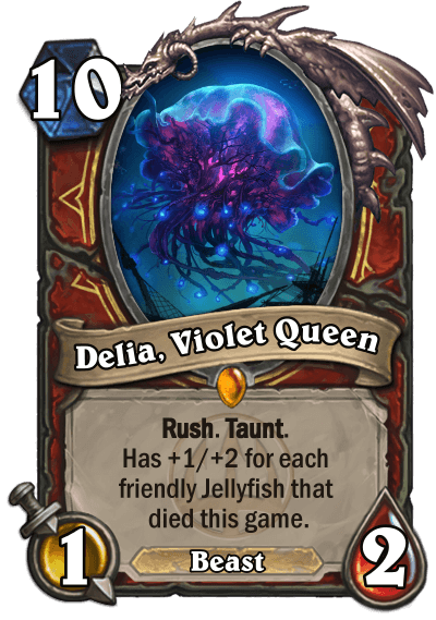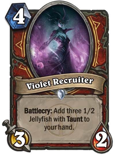 I also dabbled with entirely new class deck types such as the Jellyfish Control warrior, which revolves around generating and buffing small tokens throughout the game and them finishing with a massive Delia, Violet Queen similar to a C'Thun deck. Again, while the cards were designed around a specific playstyle, their general utility could find them a home in many Control-Style Warrior decks."