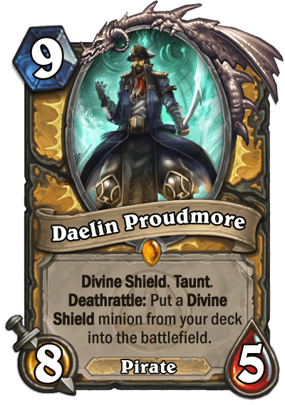 Zozoth: "Two of my favorite cards of the expansion are Daelin Proudmore and Aryll's Mindbender. My favorite deck type to play is a Control Highlander Deathrattle Paladin in Standard and Wild (a mouthful, I know). Blizzard's Paladin support has been a bit awkward as of late, as they seem to be pushing a more token/aggro playstyle with not many control cards being printed. I made Daelin as a way to boost the slower Paladin decks without making it incredibly unfun to play against. He works as a fairly aggressive Taunt in the lategame that can Tutor a number of useful cards such as Tirion Fordring, Shirvallah the Tiger, or even one of the other cards from the set, Lightbane Drake.