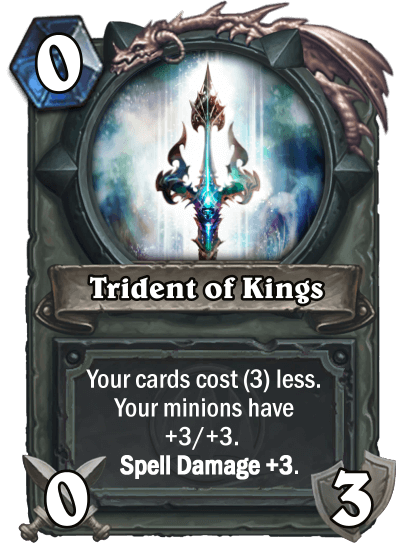 Zozoth: "The interesting thing with the Legendary Tridents is that I had actually completed the set without them but realized that having two legendary minions per class wasn't anything particularly new or flashy. So I decided to add the Tridents as a way to tie together the whole "Battle for the Sea" flavor, as it would make sense that each leader would have a Powerful Trident of their own. I actually had this set completed before Galakrond's Awakening, so it is sort of nice to see that the Hearthstone Devs are also willing to give three legendries to each class. I planned to have these Tridents given out for free to all players similar to the Galakrond cards, so that newer players can get a taste of the legendary effect of each Trident without having to spend some of their hard-earned dust on it. The good thing with this is that the Tridents work well enough on their own and can get value with many of the cheaper cards, so they aren't as big of a buildaround as Galakrond or C'Thun."