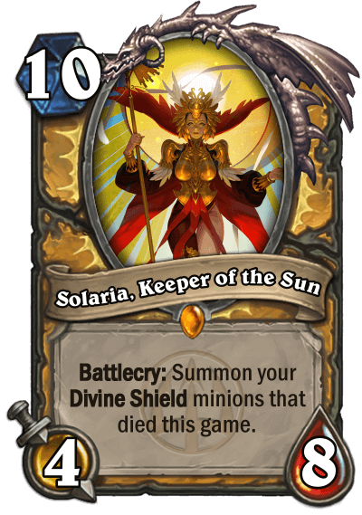 Zozoth: Not much really, I just hope you enjoyed my expansion! Some of the best parts about completing expansions like this is seeing how new card releases by Blizzard could work together with the cards in your set. For example, because of the powerful effect from Solaria, Keeper of the Sun, any new big Divine Shield minions would work as a welcome addition to the Divine Shield control paladin decktype.