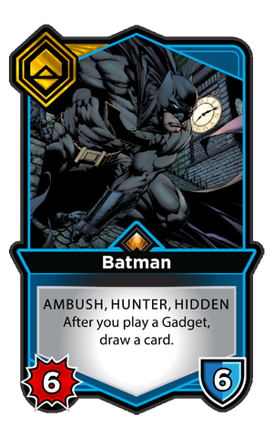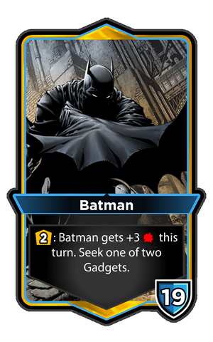 Do note that the same character can be both a Leader and a Recruit. So can have Batman as the man in charge, and then add two mote Batmans (Batmen?) into your deck.