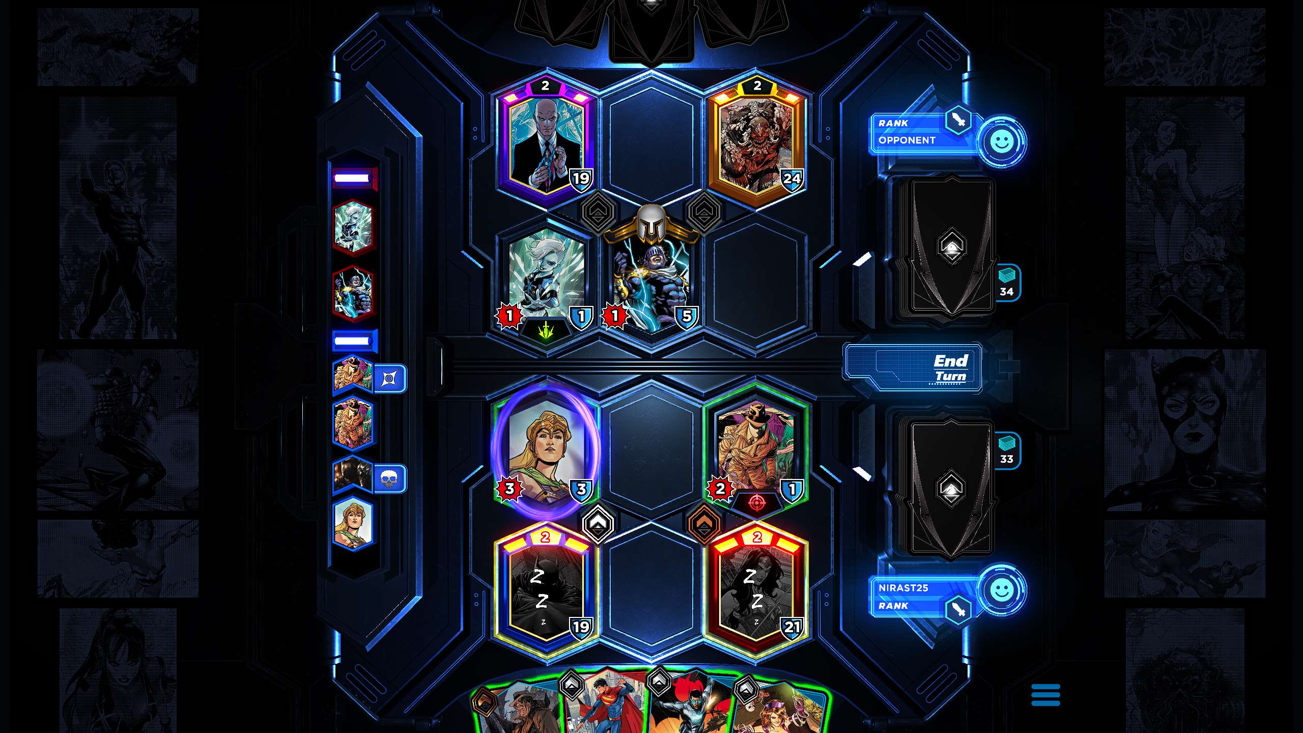 Combat is pretty much identical to Hearthstone. You drag one of your cards over one of your opponent's , and they fight. When cards battle, each recruit will deal damage to it's opponent's Health equal to the recruit's Power, and the damage happens simultaneously. This is a system similar to most modern digital CCGs, like Hearthstone and Legends of Runeterra.